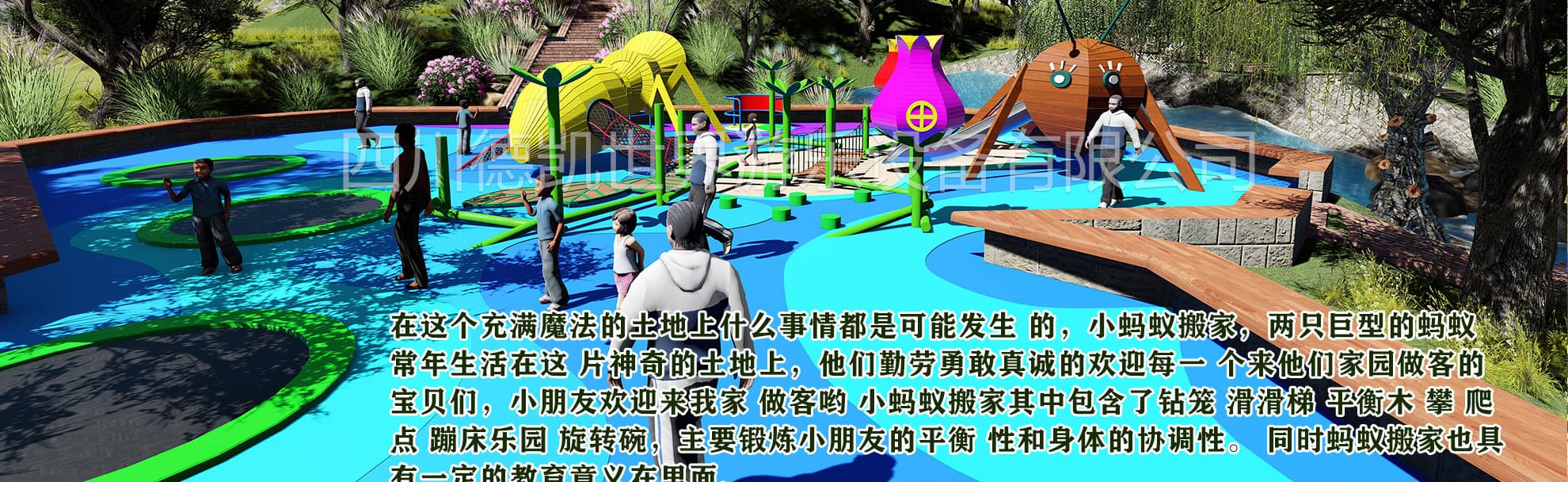 我們是一家主要為文旅地產(chǎn),旅游景區(qū),特色小鎮(zhèn),田園綜合體,生態(tài)農(nóng)莊,,市政公園,研學(xué)旅行基地,商業(yè)住宅,水上世界,兒童探索館等提供IP設(shè)計(jì)、創(chuàng)意規(guī)劃、場地設(shè)計(jì)、產(chǎn)品定制、研發(fā)生產(chǎn),銷售安裝、運(yùn)營策劃、售后服務(wù)為一體的無動(dòng)力兒童游樂設(shè)施生產(chǎn)廠家。