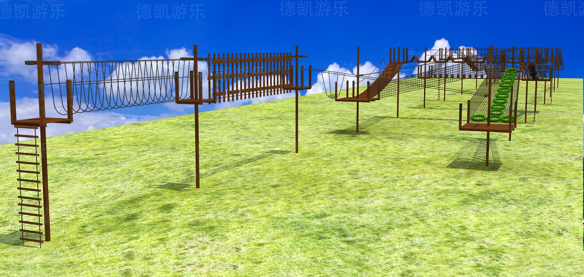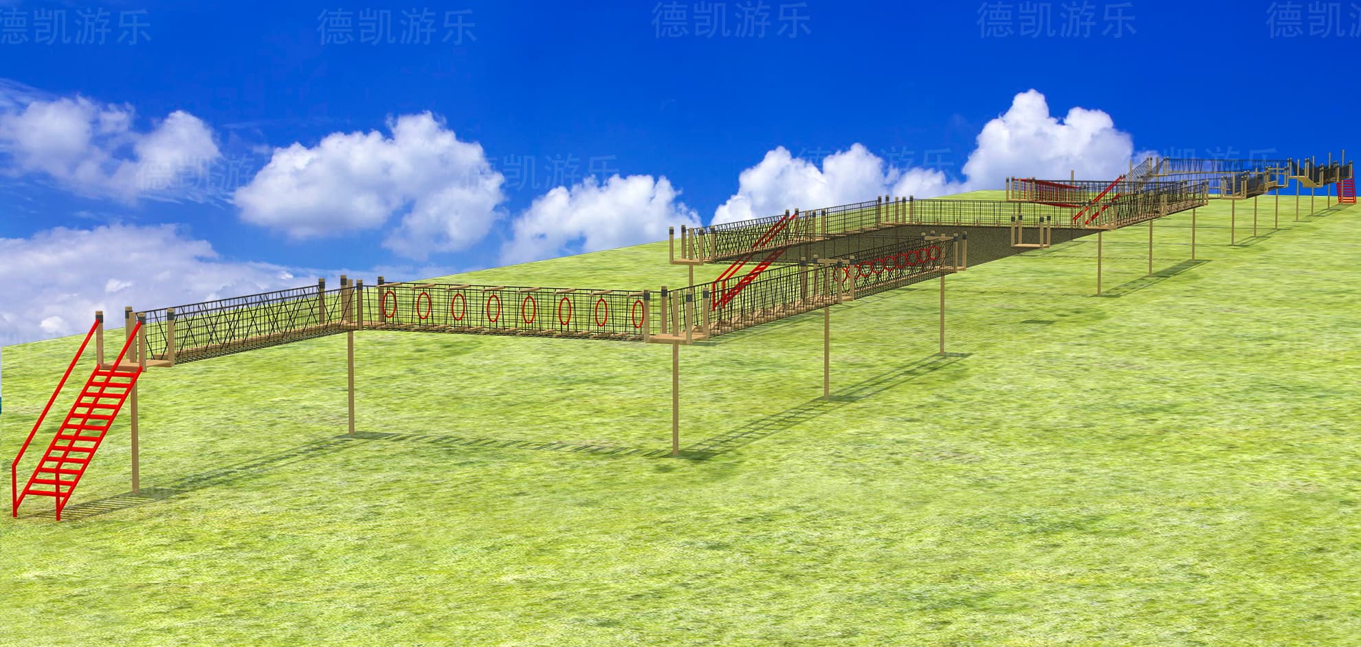后面的拓展就包括了攀爬梯、U形橋、交錯豎橋、空中滑索、輪胎橋、梅花樁等等,幾乎囊括了叢林穿越的大部分項目,降低了這個項目的危險性,更加的適合年齡比較小的孩子們玩耍。