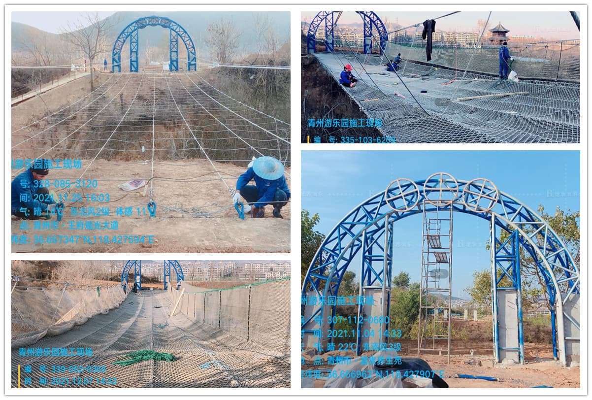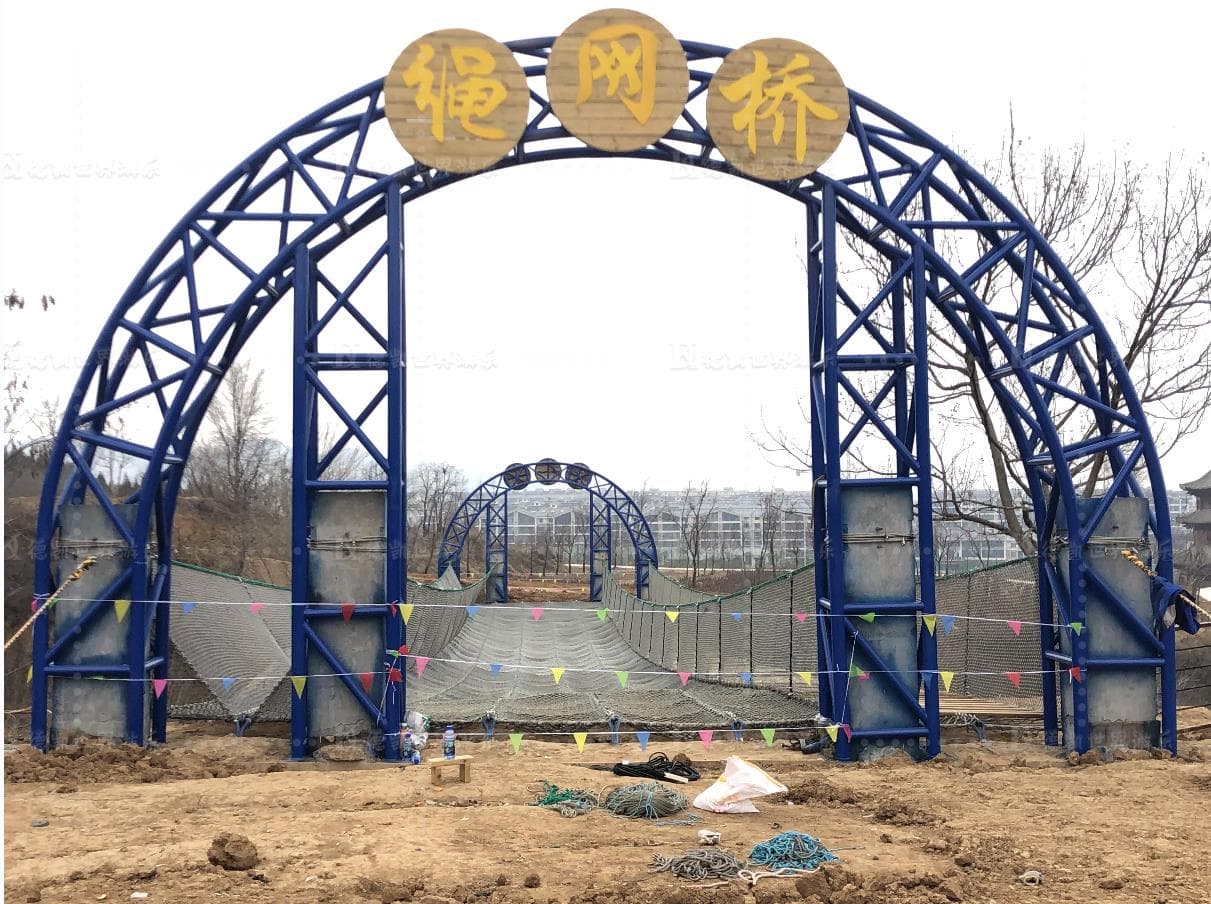 繩網(wǎng)橋顧名思義以繩網(wǎng)組成的橋,是不是特別的刺激,在這里你大可放心的走過來走去。整體結(jié)構(gòu)采用戶外專用鋼絲繩做基礎(chǔ)外形,在此基礎(chǔ)上再使用戶外專用繩網(wǎng)組裝而成,結(jié)實(shí)耐用。