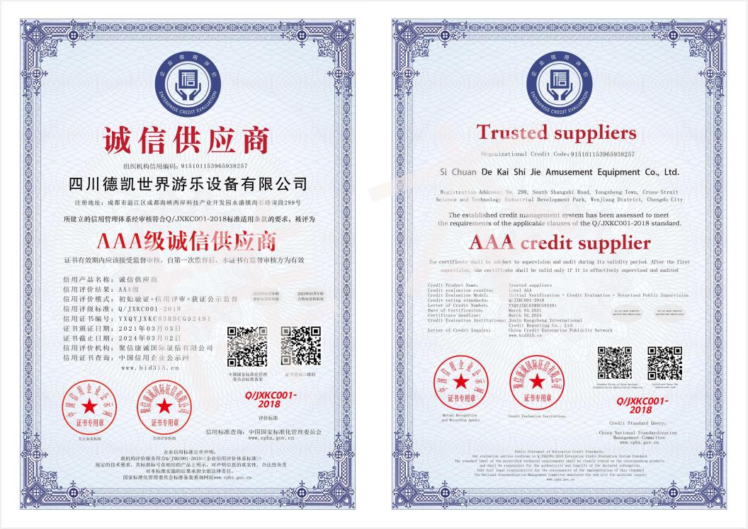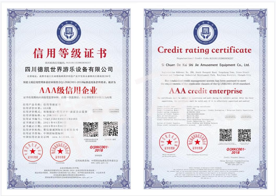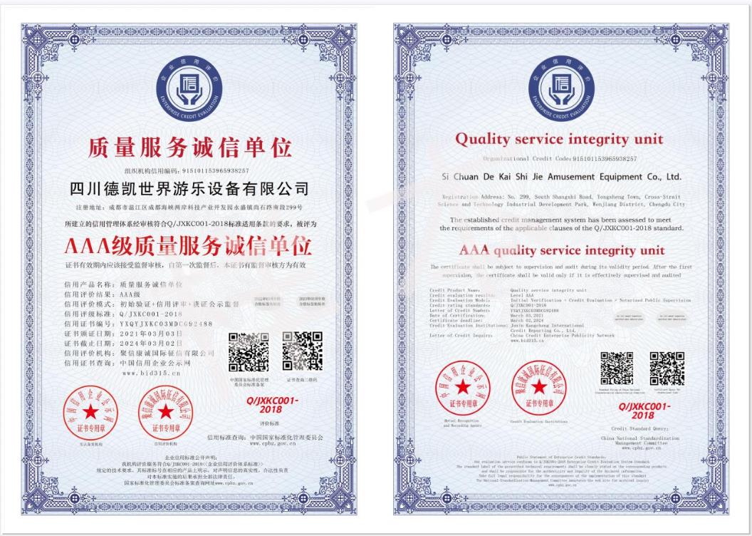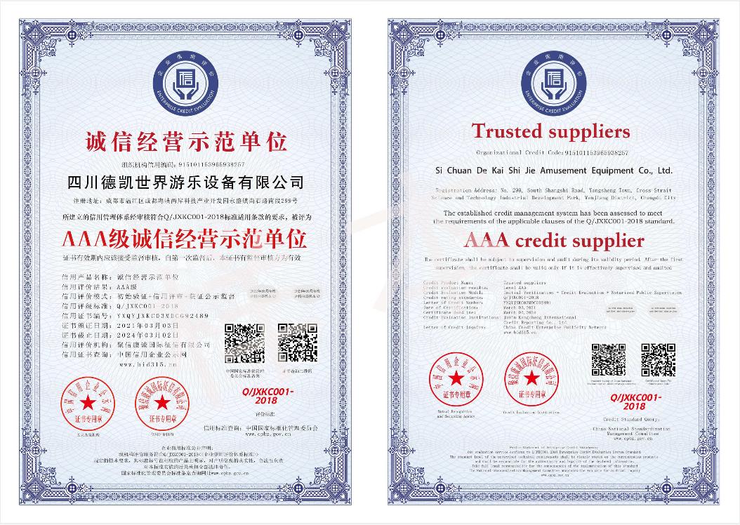 四川德凱世界游樂設(shè)備有限公司是一家集研發(fā)、生產(chǎn)、銷售、服務(wù)于一體的兒童游樂設(shè)備廠家,并衍生打造兒童游樂園,形成了從項目調(diào)研、整體規(guī)劃設(shè)計、設(shè)備研發(fā)生產(chǎn)、施工安裝、售后運營投資、項目幫扶合作一體化的全產(chǎn)業(yè)鏈布局。德凱游樂一直奉行“誠信,質(zhì)量,安全”的經(jīng)營理念,不斷創(chuàng)新產(chǎn)品和技術(shù)提升,服務(wù)全國客戶超5000家以上,先后孵化100~1000畝以上多個大型游樂園項目方案落地,實戰(zhàn)經(jīng)驗豐富,深受客戶認(rèn)可和好評。